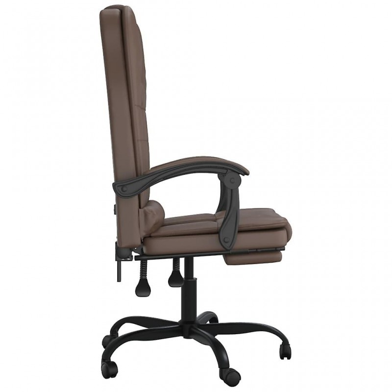Color: Marrón. Material: Piel sintética (75 % cloruro de polivinilo, 5 % algodón, 20 % poliéster), metal, contrachapado. Relleno: espuma. Dimensiones totales: 63 x 56 x (112,5-122) cm (ancho x profundo x alto). Dimensiones reclinadas: 63 x 128,5 x (100-109,5) cm (ancho x profundo x alto). Superficie del asiento: 51 x 44 cm (ancho x profundo). Altura del asiento desde el suelo: 46,5-56 cm. Altura del reposabrazos desde el suelo: 67,5-77 cm. Voltaje de entrada: CC 5 V. Corriente de entrada: 2 A.