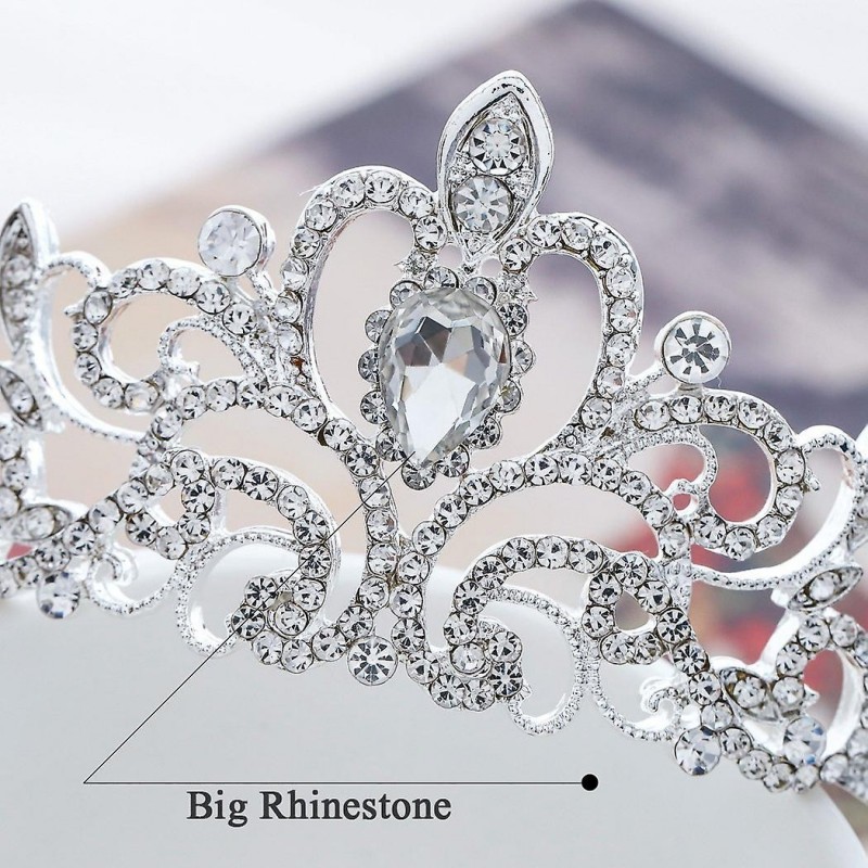 Esta corona de cristal es elegante con su brillo suave y elegante. La tiara de boda que se muestra en la imagen está realizada en plata con deslumbrantes diamantes de imitación. ¡Perfecto para fiestas de bodas, despedidas de soltera o para caminar hacia el altar!