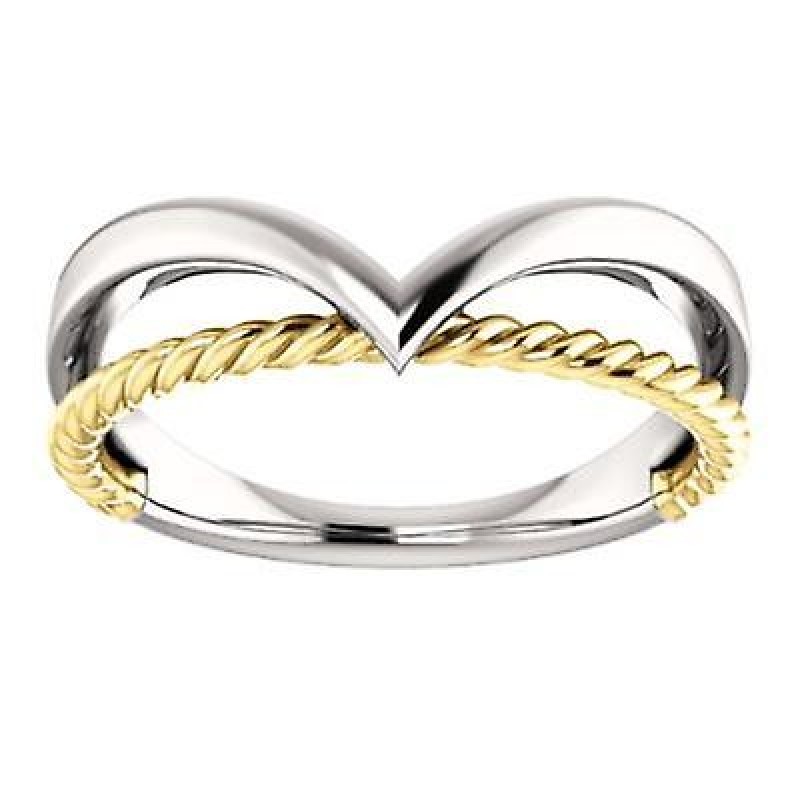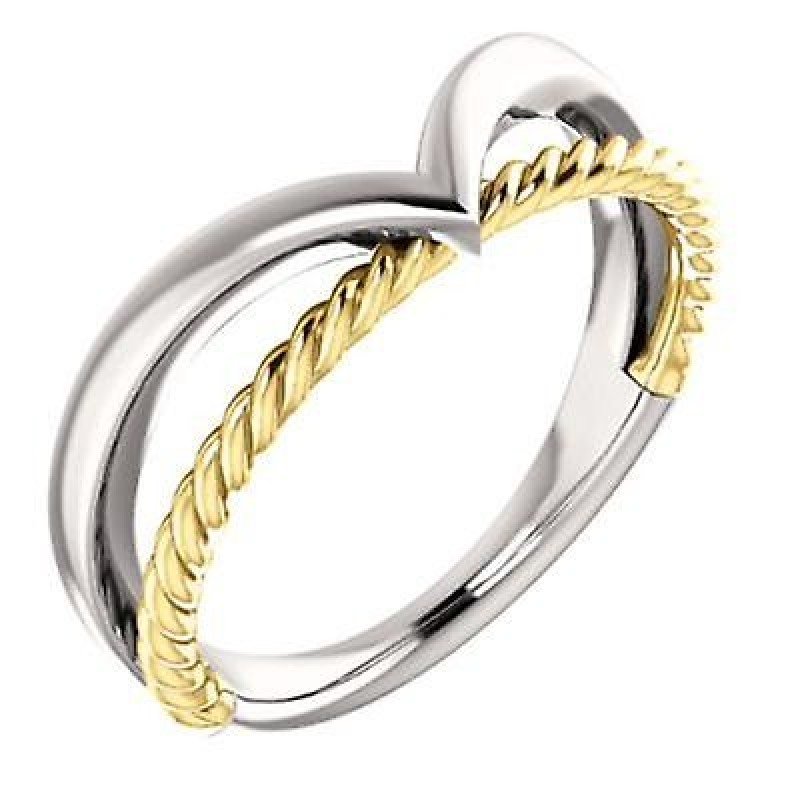 Anillo de cuerda con espacio negativo en oro blanco de 14 k y oro amarillo pulido, talla 6.5, regalo