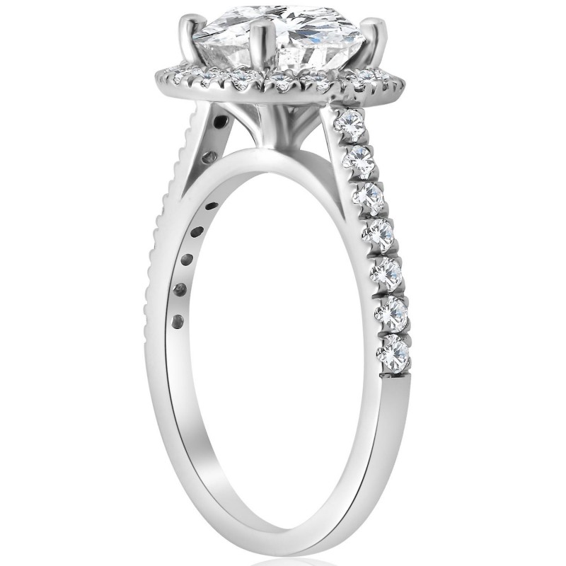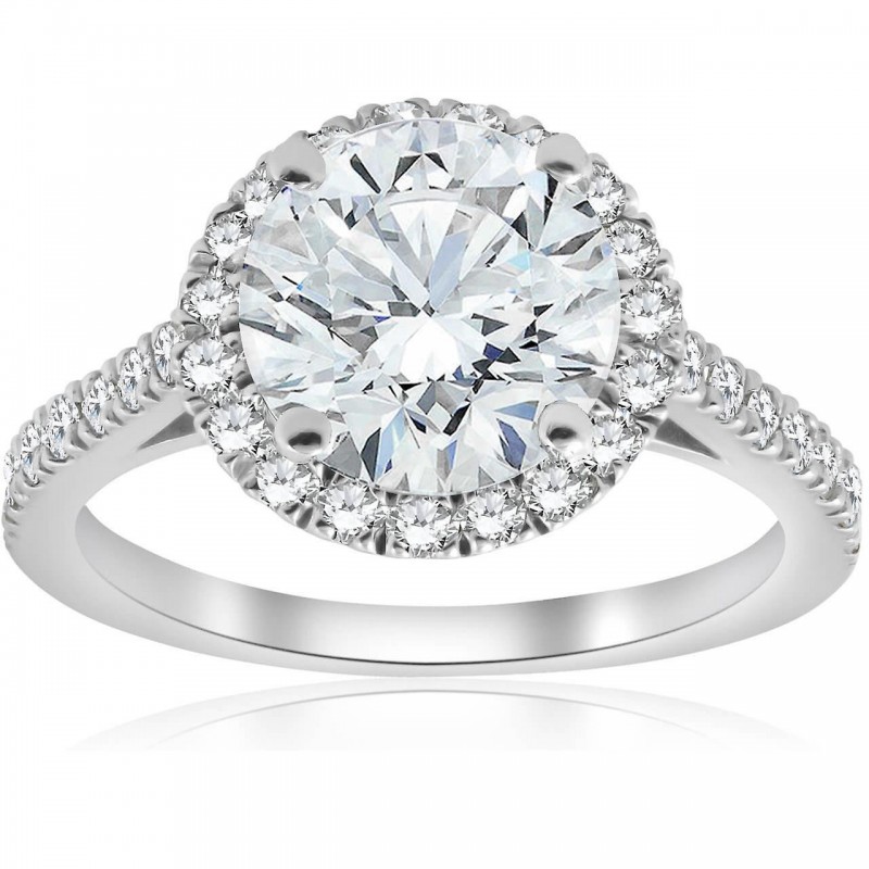 Anillo de compromiso de oro blanco de 14 k con diamante redondo de talla halo de 2 1/2 quilates