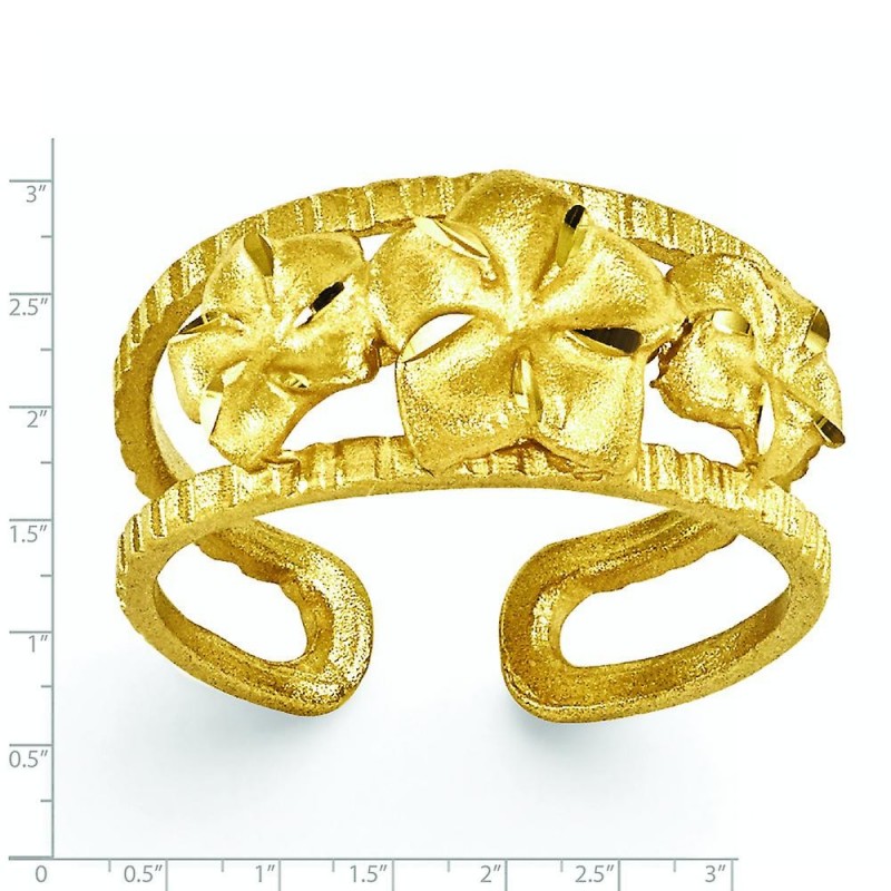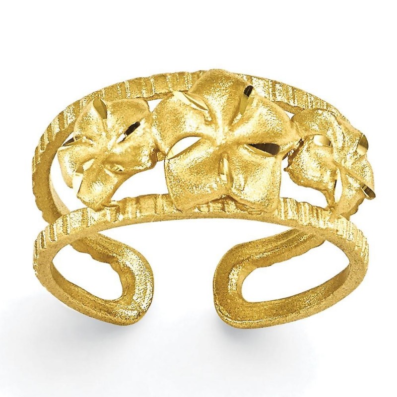 Anillo para el pie de plumeria satinada en oro amarillo de 14 k - Joya de regalo para mujer - 1,8 gr